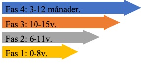 Rehabiliteringen kan preliminärt delas in i 4 faser med ungefärliga tidsramar där varje fas har ett antal specifika mål som ska uppnås för att stegra upp till nästa fas.